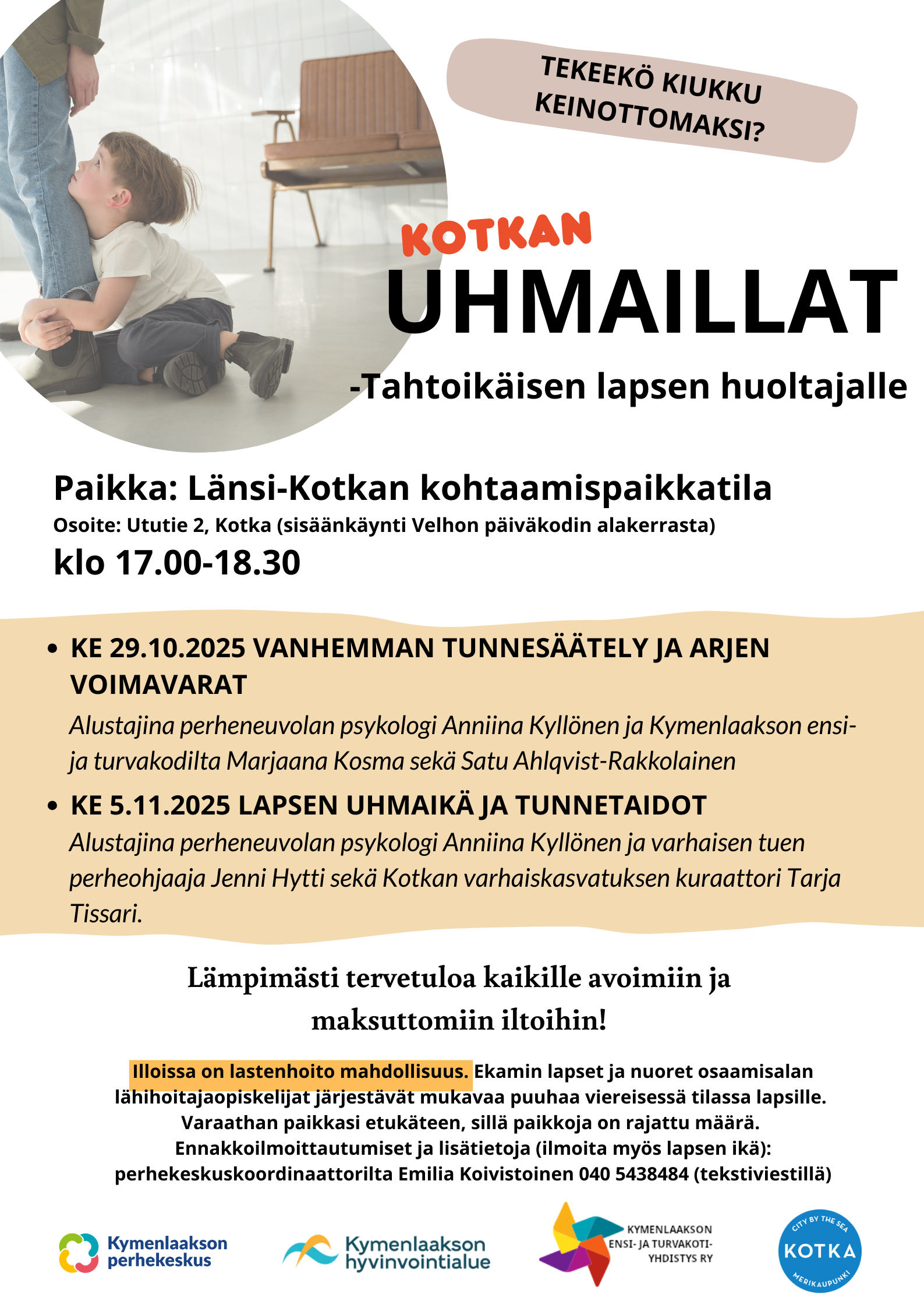 - Ke 5.11. klo 17–18.30 – Lapsen uhmaikä ja tunnetaidot