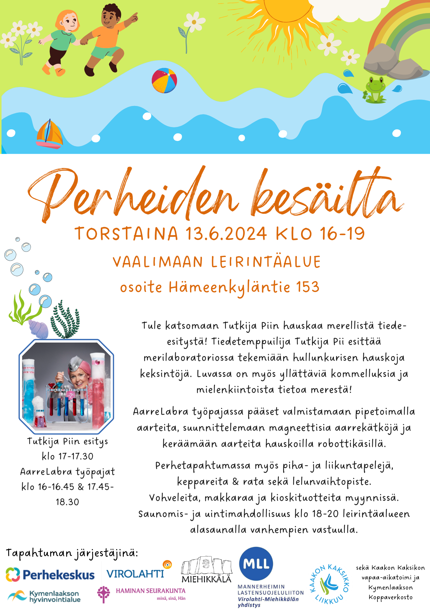 Lisätietoja ja ilmoittautumiset ryhmään: Varhaisen tuen perheohjaajalle Tämä sähköpostiosoite on suojattu spamboteilta. Tarvitset JavaScript-tuen nähdäksesi sen./ 040 1991312 (huom. poissa 29.7-4.8.)