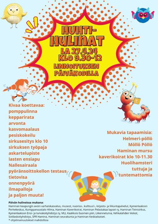 Huhtihulinat Haminan Linnoituksen päiväkodilla la 27.4. klo 9.30 alkaen!