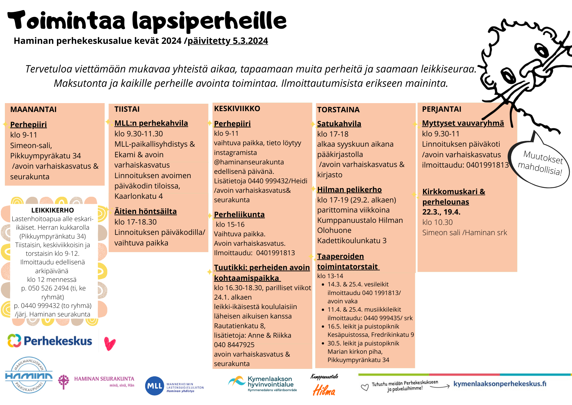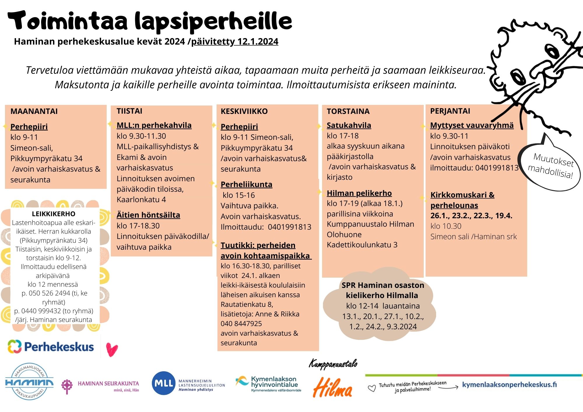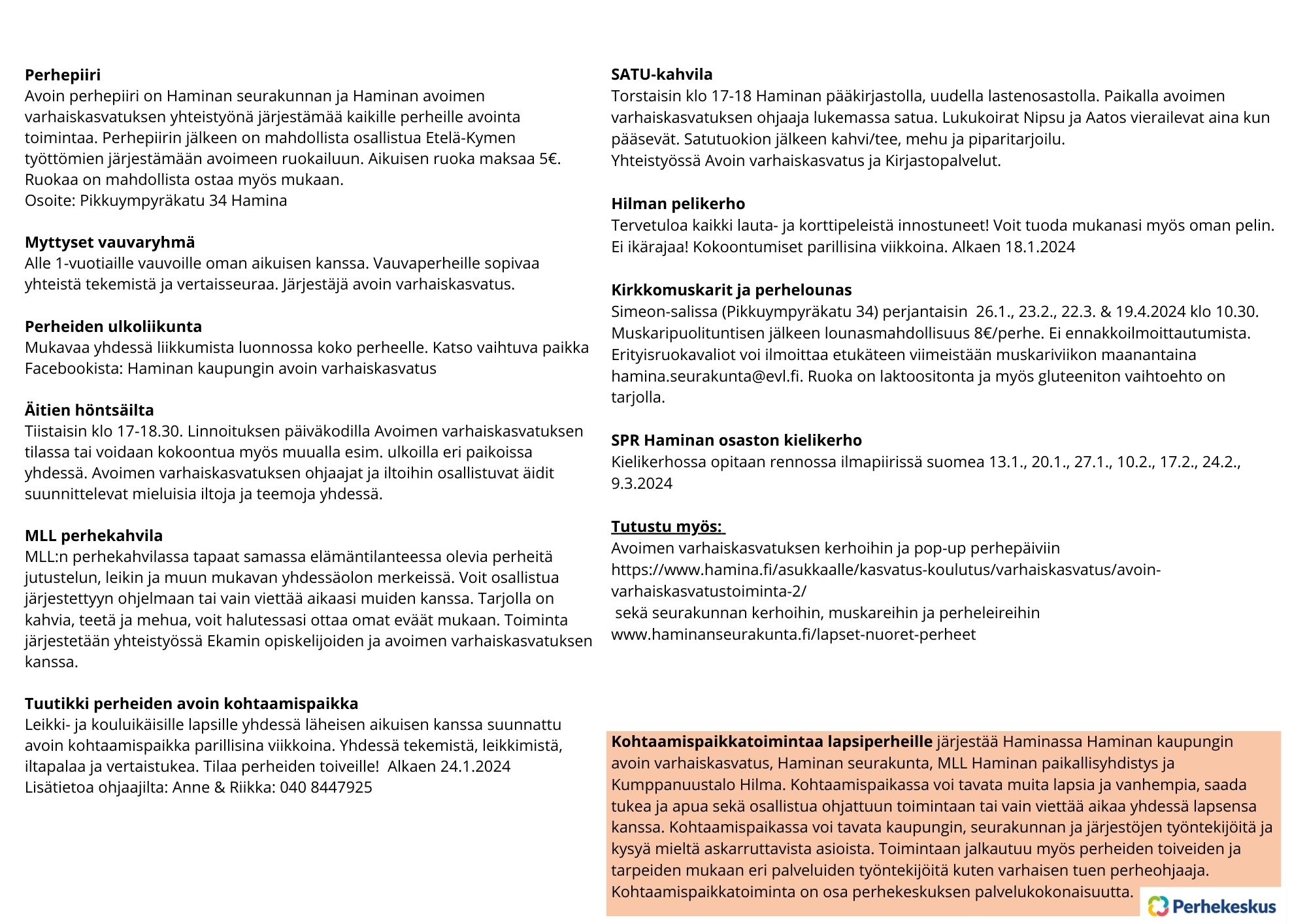 Haminan avointa toimintaa kohtaamispaikoilla kevät 2024