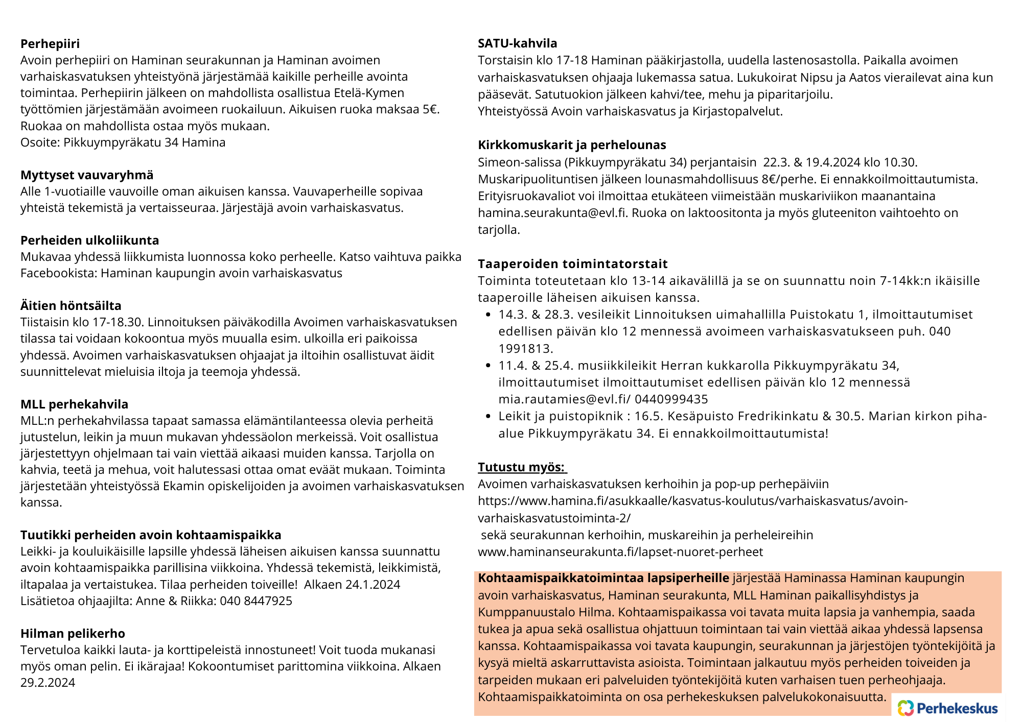 • Hamina Avoin perhepiiri (Simeon-sali)