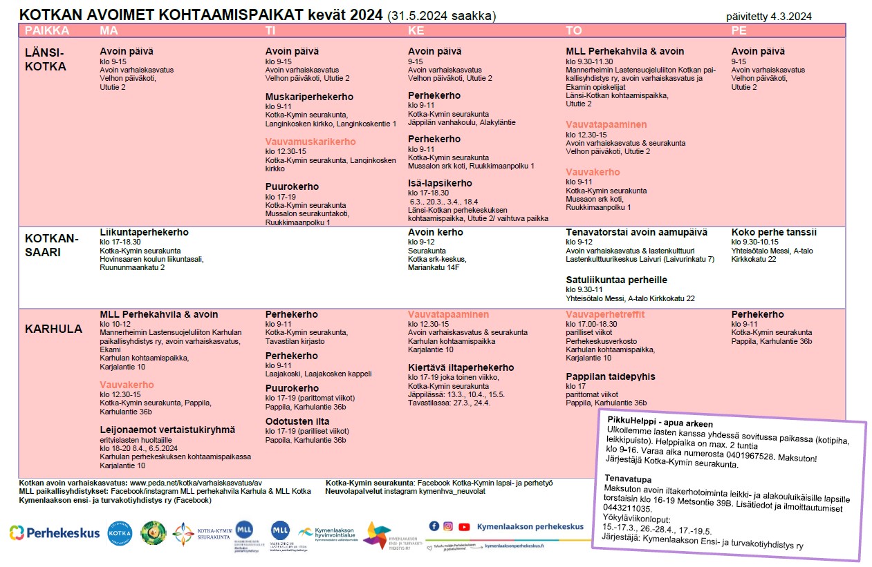 • Kuusankosken perhekeskusalueen kohtaamispaikat