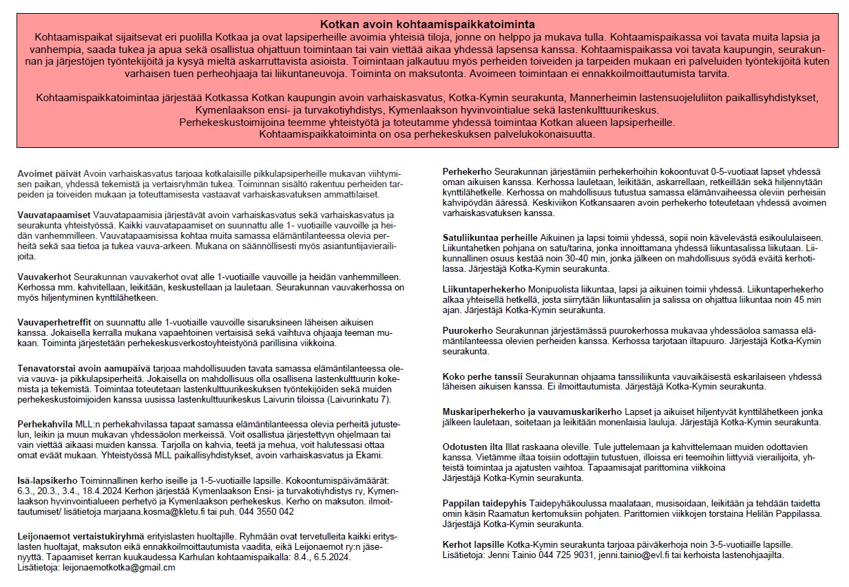 • Länsi-Kotkan perhekeskuksen kohtaamispaikka