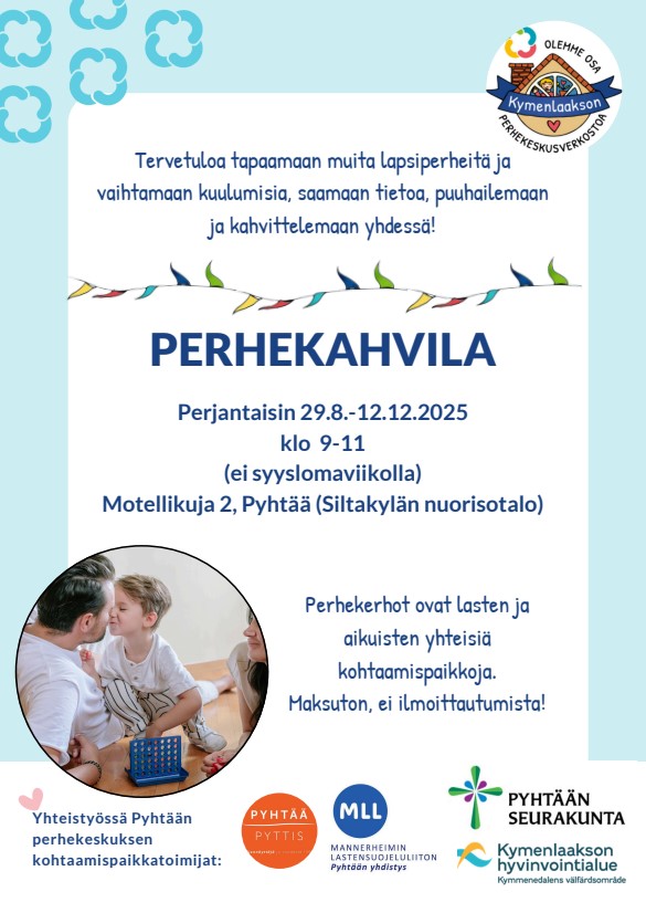 Pyhtään perhekeskuksen kohtaamispaikka sijaitsee Siltakylässä, Siltakylän nuorisotalolla, osoitteessa Motellikuja 2, Siltakylä